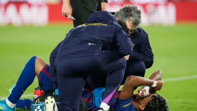 Ο Λαμίν Γιαμάλ αποσύρθηκε από τον αγώνα πριν την ολοκλήρωση του πρώτου ημιχρόνου, με το σκορ στο 1-0 υπέρ της Μπαρτσελόνα. Ο νεαρός εξτρεμ, ο οποίος έχει δείξει ιδιαίτερες ικανότητες, αισθάνθηκε έντονες ενοχλήσεις στο πόδι και δεν μπορούσε να συνεχίσει. Αν και οι αρχικές εκτιμήσεις αναφέρουν σοβαρό τραυματισμό, τα αποτελέσματα των ιατρικών εξετάσεων αναμένονται για να επιβεβαιώσουν την κατάσταση της υγείας του.